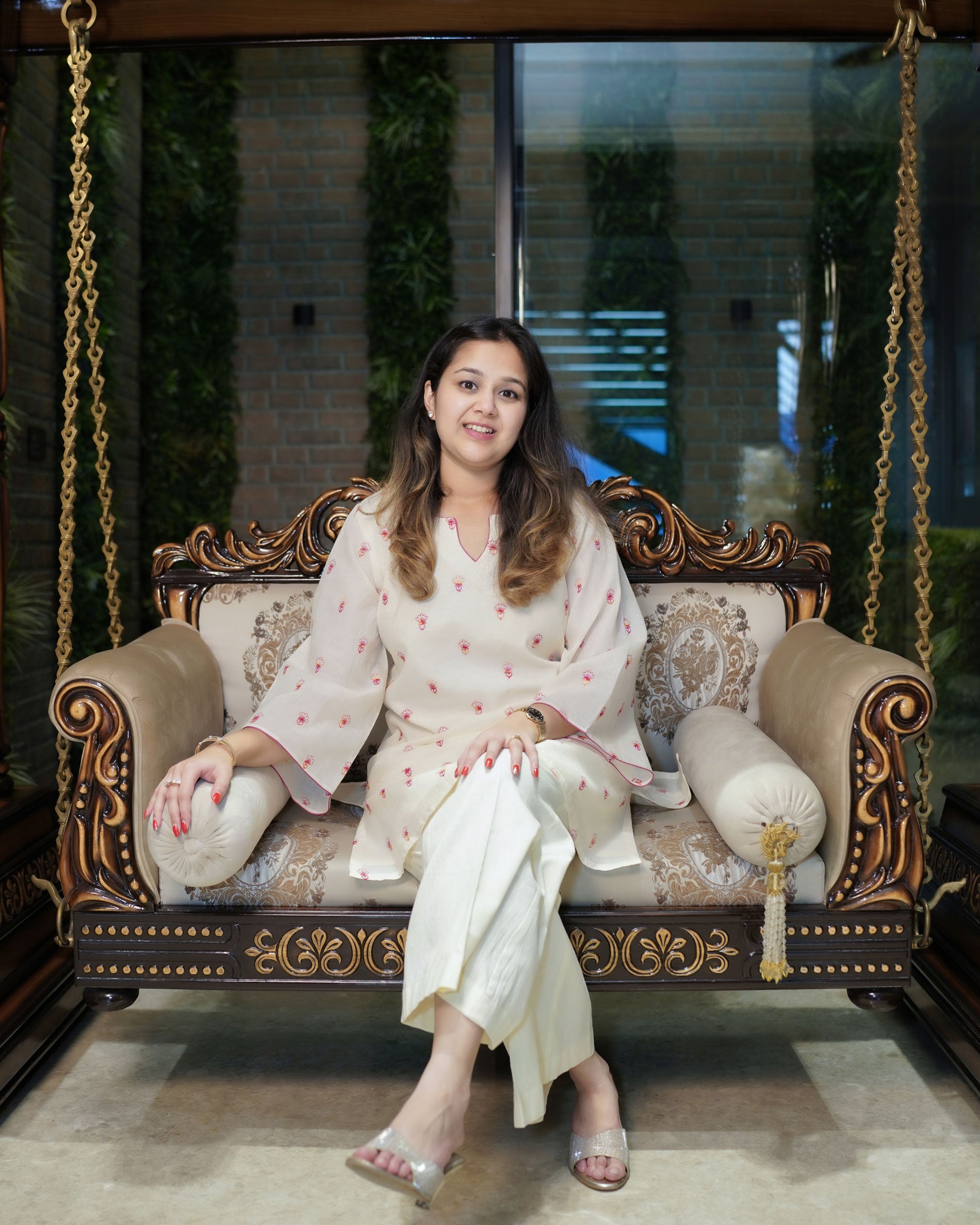 Elevate your everyday ethnic wear with this elegant cream cotton kurta set, designed for comfort and understated style. The straight-cut kurta features delicate floral embroidery in soft pink tones, adding a touch of charm to its minimal look. Made from breathable, lightweight cotton, it comes with flared palazzo pants that enhance ease of movement and style. The kurta has a simple V-slit neckline and three-quarter sleeves, perfect for daywear, casual outings, or festive get-togethers.
